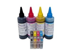 PrintPayLess® Brand products. These are 4 pcs Refillable ink cartridges for Epson 126, T126(nonOEM) ink cartridges, 400 ml of UV resistant dye ink specially formulated for Epson. Cartridges are Pre-Filled with premium quality, specially formulated dye ink for Epson. NOT universal ink! They come with resettable chips (RC) which allows you to use the same chips/cartridges over and over again. Spongless refillable ink cartridges come with pre-made refill holes; our specially designed ink bottles make refill Supper EASY, NO MESS! Syringes and needles are for your precise refilling. The refillable ink cartridges and bulk refill ink come with four colors: Black, Cyan, Yellow, and Magenta color. Each bottle of ink contains 100 ml = 3.3 fl. OZ. They can be used in Epson printers: Epson Stylus NX330, NX430; Epson WorkForce 60, WorkForce 435, WorkForce 545, WorkForce 630, WorkForce 633, WorkForce 635, WorkForce 645, WorkForce 840, WorkForce 845. Why Pay More ? Print Pay Less !