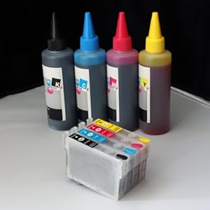 Item includes: 4 refillable Epson 127 ink cartridges(full set) and 1 set Refill ink bottles (100ml per color, 400ml total)